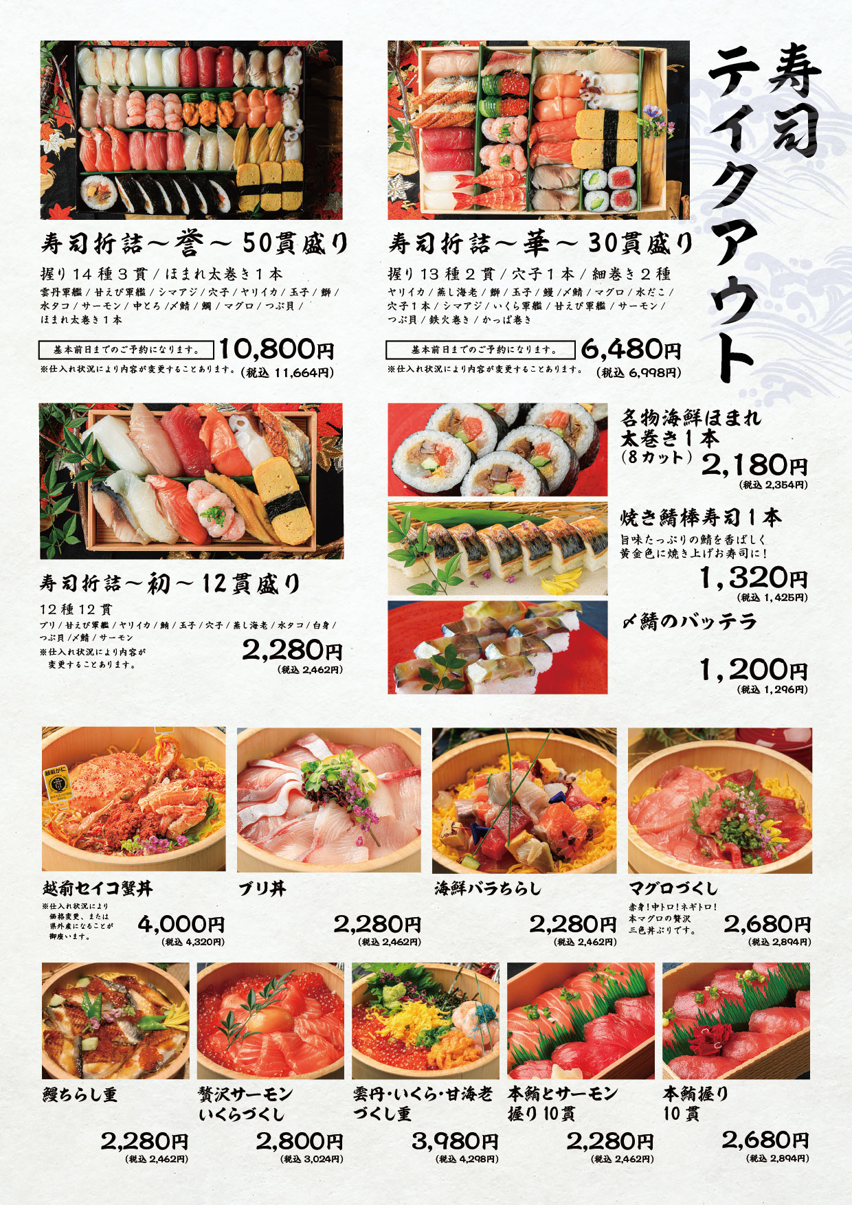 新鮮な握り寿司と海鮮丼をテイクアウト